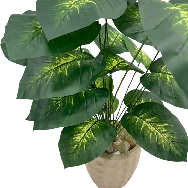 Enhance your space with this expertly crafted artificial tree featuring lush green leaves arranged in a textured beige ceramic pot. Filled with decorative stones, it offers a sophisticated, lifelike touch of greenery that requires no upkeep—ideal for maintaining a fresh, natural ambiance in any interior setting.