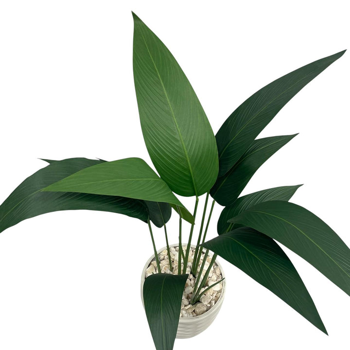 A stunning artificial Bird of Paradise tree featuring a stylish denim-textured pot and 11 lush green leaves for a vibrant tropical look. Perfect for living rooms, entryways, or modern offices, this elegant piece combines natural beauty with effortless maintenance, adding warmth and freshness to any space.