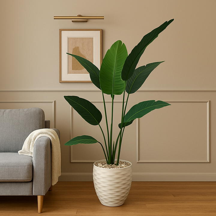 Elegant artificial banana tree crafted with a soft denim-like texture and 8 lush green leaves for a vibrant, natural look. Perfect for living rooms, entryways, or modern offices, this piece brings freshness and style to your space without the need for maintenance.