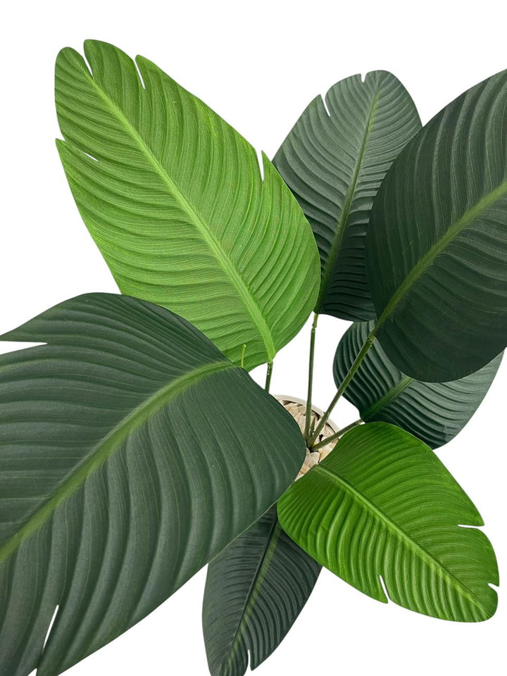شجرة موز صناعية أنيقة تضيف لمسة طبيعية راقية لأي زاوية من المنزل. تأتي بخامة جينز ناعمة الملمس وأوراق خضراء واقعية بعدد ٨ أوراق كبيرة تمنح إحساسًا بالحيوية والانتعاش. مثالية لغرف المعيشة، المداخل، أو المكاتب العصرية، حيث تضفي مظهرًا أنيقًا دون الحاجة للعناية اليومية.